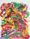 *Dit schilderij is met acrylverf en penseel opgebracht. Ook heb ik gebruik gemaakt van spatels en spuitflessen.
