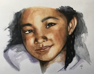 2020Meisje * matrialen; aquarelverf van het merk Van Gogh en aquarel papier van goede kwaliteit.